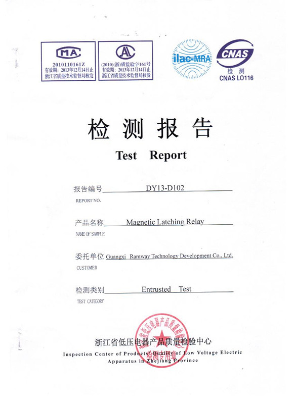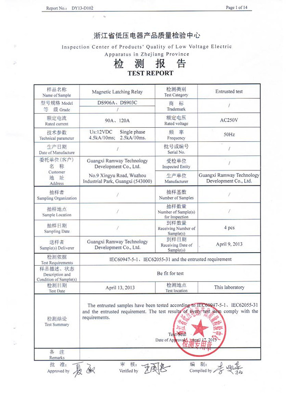 4 903C 90A 906A 120A Test report UC2 - 广西睿奕科技开发有限公司 GUANGXI RAMWAY TECHNOLOGY CO LTD latching relay magnetic relay